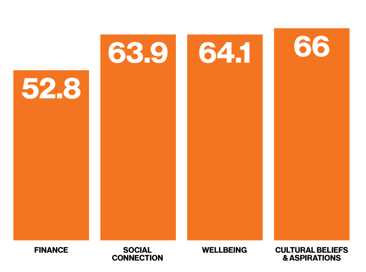 Dig a little deeper and a more complex picture emerges, revealing a community in which age and income help frame differences in overall wellbeing and connectedness.